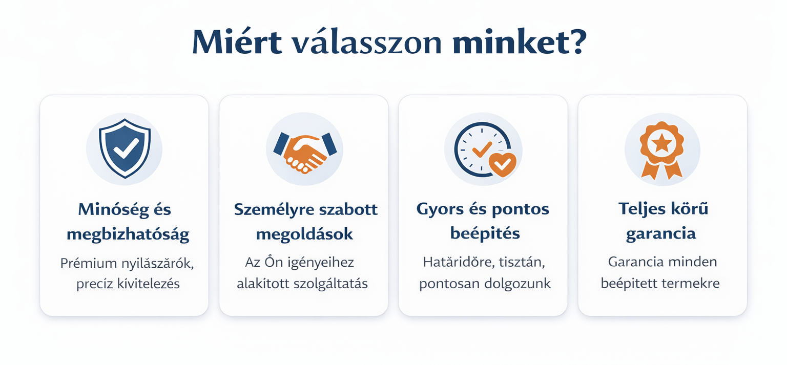 - Nem közvetítők vagyunk – a felméréstől a beépítésig mi végezzük a munkát